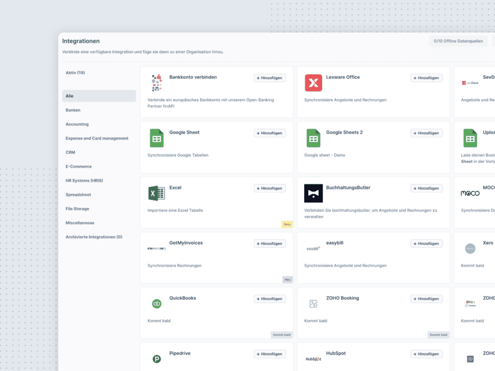 Integriere die Datenquellen Deiner Wahl und erhalte vollen Überblick über Leads, Angebote und Rechnungen
