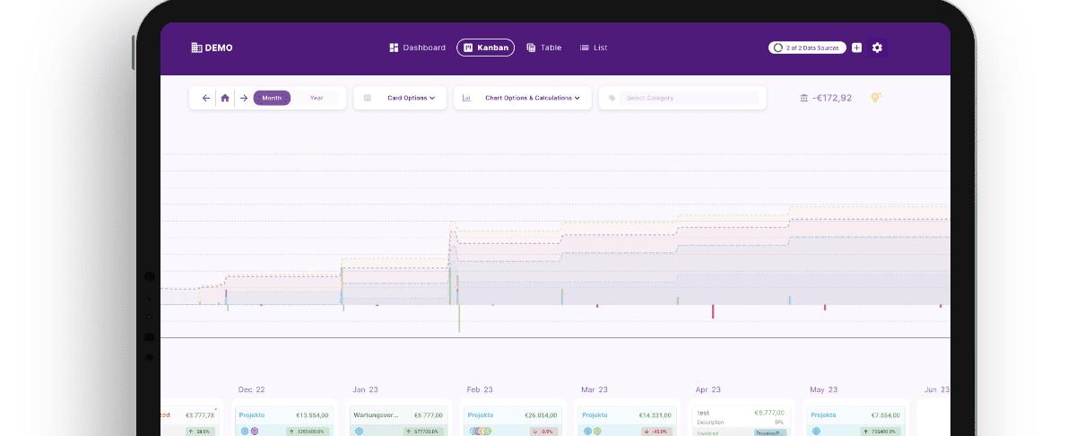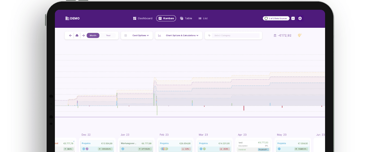 - Überwachung und Prognosen: finway bietet ein Finanz-Dashboard, das einen Einblick in die Unternehmenskennzahlen ermöglicht.