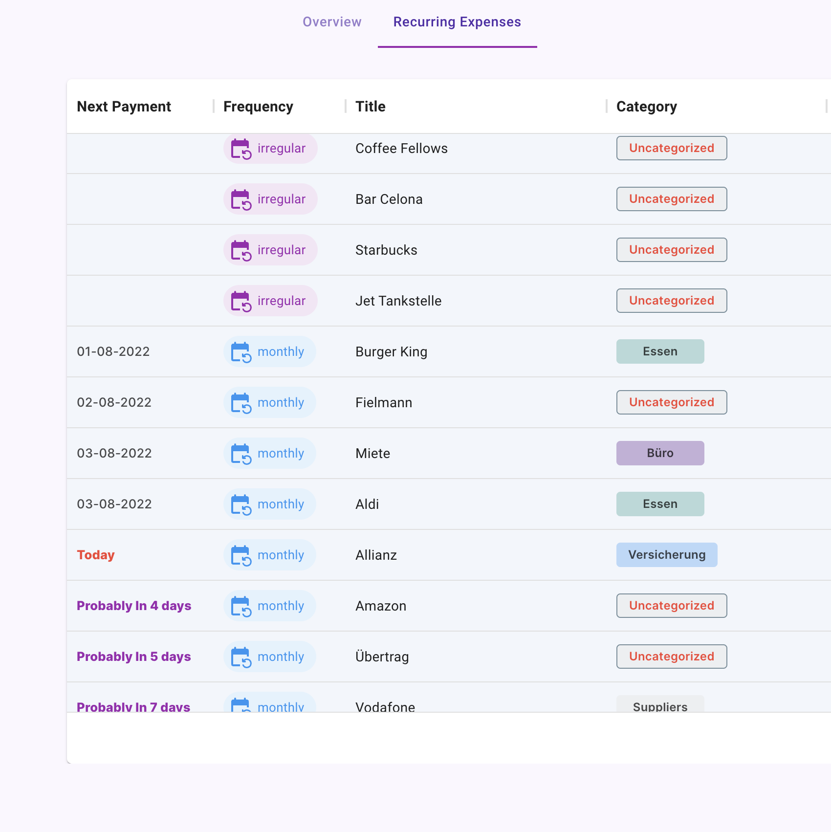 Einige Cashflow-Management-Tools bieten genau für diesen Fall Werkzeuge an, mit denen man die Transaktionen automatisch nach solche Zahlungen analysieren kann. Außerdem können Sie Erinnerungen einrichten, wenn Verträge auslaufen oder Kündigungsfristen näher rücken. Auf diese Weise kannst Du unnötige Kosten vermeiden.