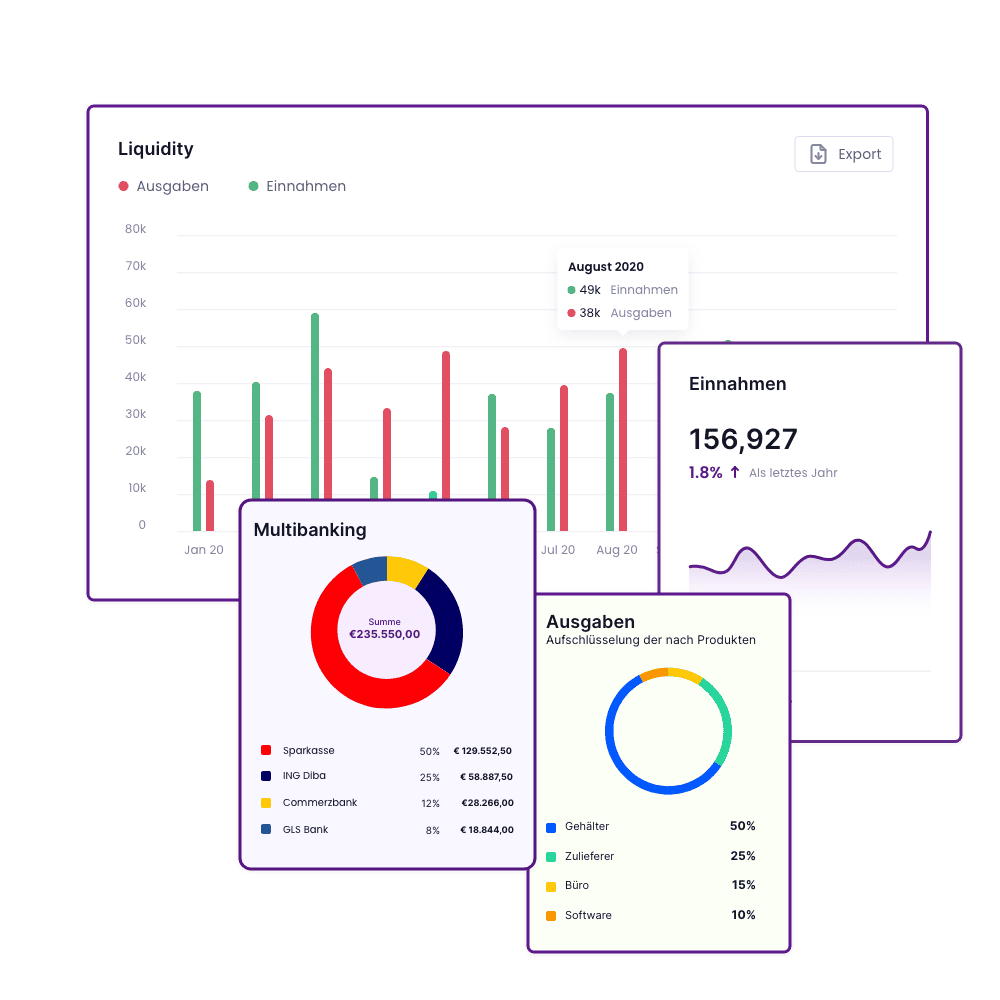 - Dashboards: Visualisierung von Finanzdaten für einen schnellen Überblick.