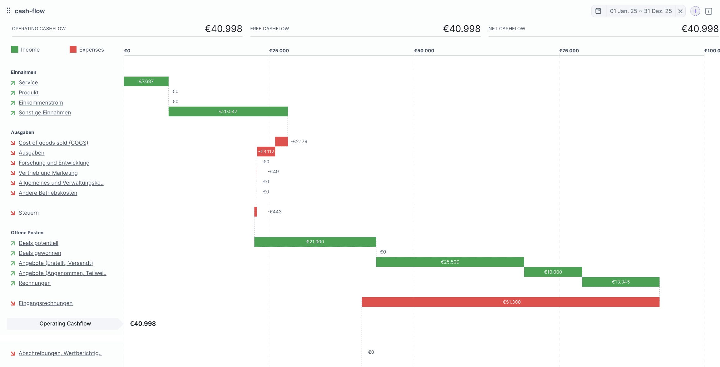 Cashflow-Management-Software kann den Prozess der Verfolgung, Analyse und Optimierung des Cashflows erheblich vereinfachen und rationalisieren. So geht’s: Verschiedene Funktionen wie cashflow forecasting, cashflow prognose und cashflow planung stehen zur Verfügung, um finanzielle Risiken zu minimieren.