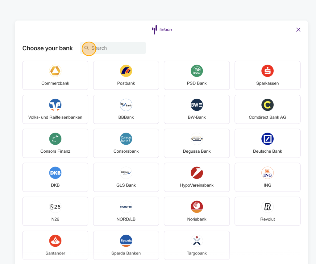 Jetzt suchst Du nach Deiner Bank und folgst den Anweisungen des Bank-API-Anbieters (z.B. Tink)