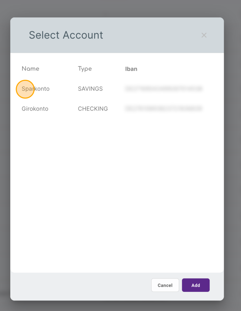 Jetzt wählst Du noch das Konto, welches Du synchronisieren möchtest und fertig. finban importiert jetzt die Transaktionen der letzten zwei Jahre (Kann je nach Bank variieren).