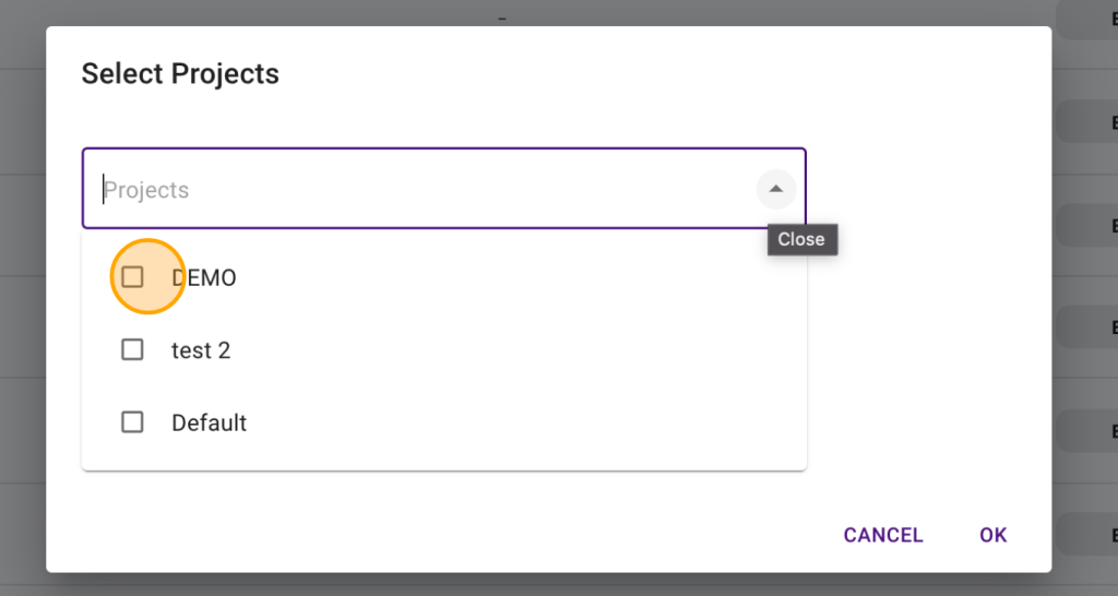 Nachdem Du das Projekt verbunden hast, einfach auf das finban Logo klicken (oben rechts) und das Projekt-Widget aufrufen.