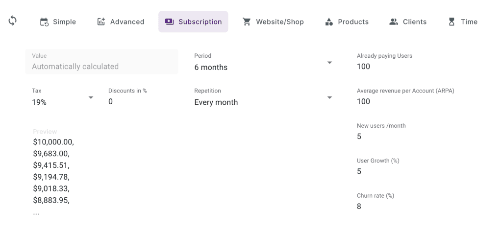 Du hast ein SaaS Unternehmen oder betreibst ein anderes Abo-Modell? Mit Subscription kannst Du Deine Einnahmen prognostizieren: