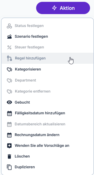 Hier werden mir die Titel der zuvor markierten Transaktionen als Bedingungen für die Regel vorgeschlagen.