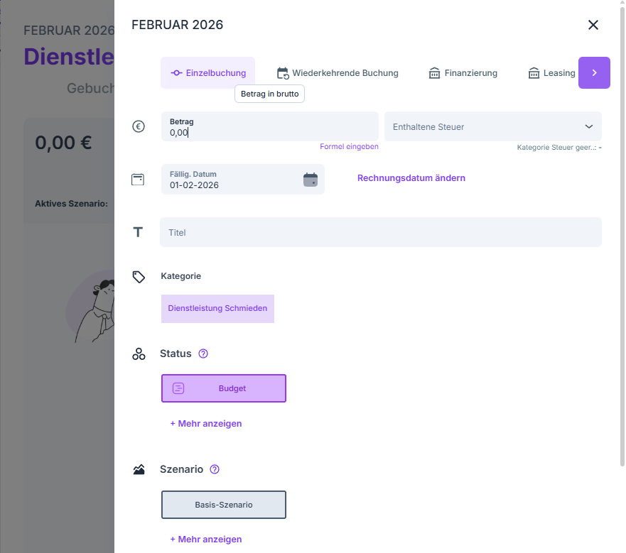 Dabei kannst du Budgets erstellen, die nur einmal vorkommen. Oder du erstellst ein wiederkehrendes Budgets, dessen Taktung/Einstellungen du beliebig festlegen kannst.