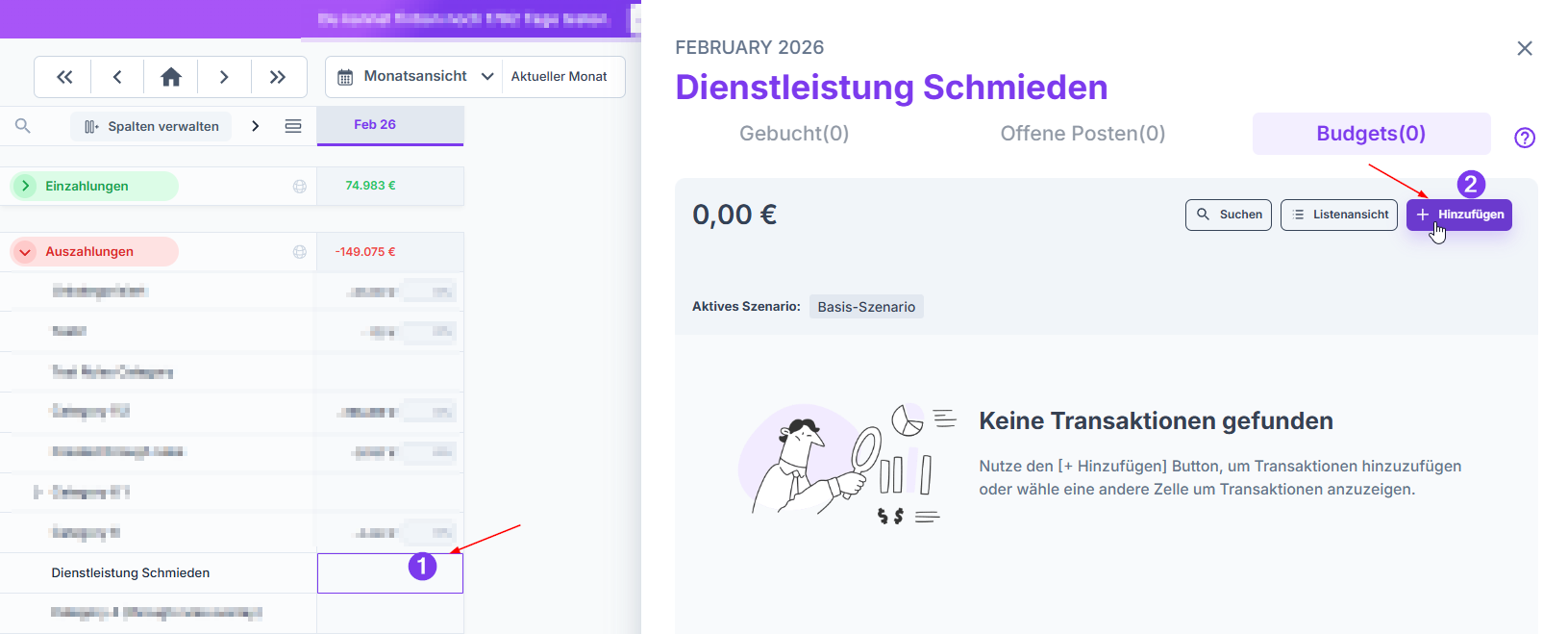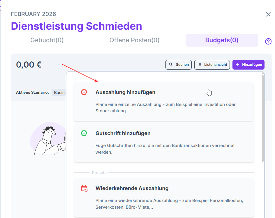 In diesem Beispiel möchte ich ein Budget in Auszahlungen erstellen: