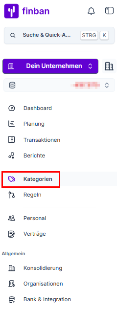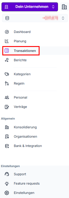 Über deine Navigation kommst du durch einen Klick auf Transaktionen in deine Kategorie-Einstellungen.