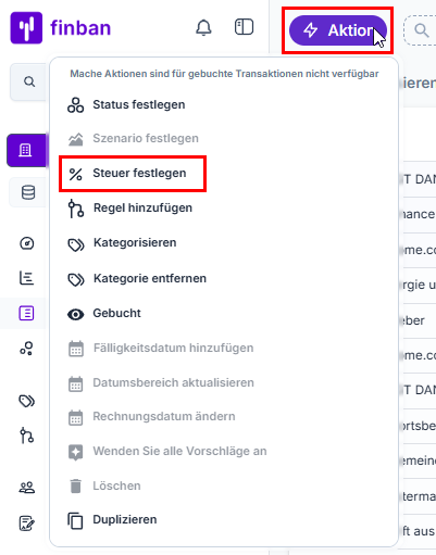 Durch einen Klick auf Steuer festlegen kannst du den ausgewählten Transaktionen einen Steuersatz zuordnen.