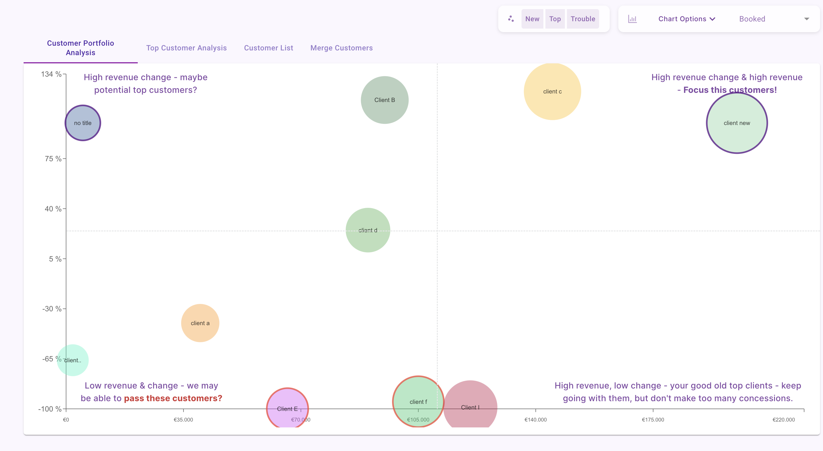 Auch Kunden-Portfolio-Analyse genannt: Analyse die Umsätze deiner Kunden