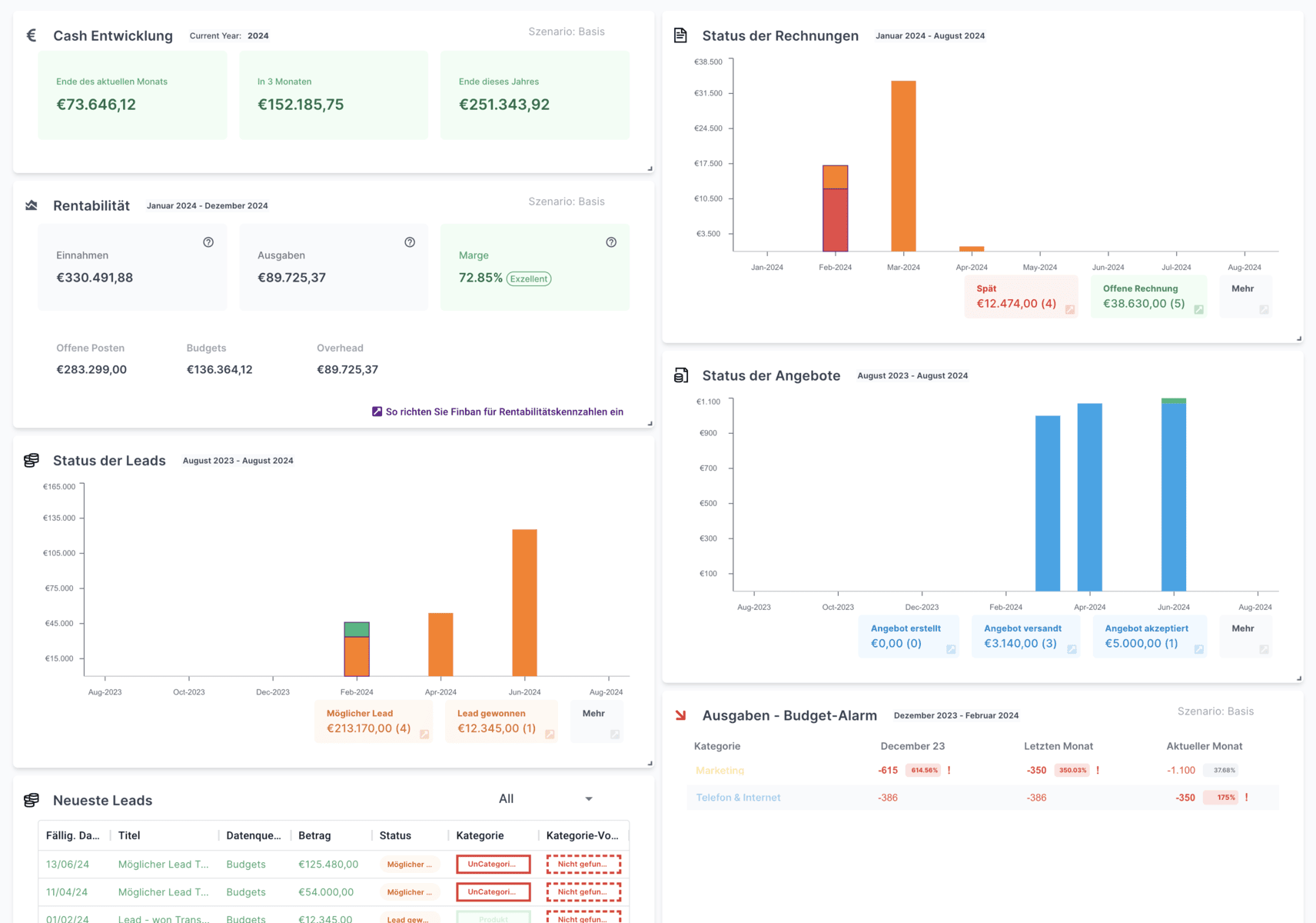 Alles rund um Liquiditätsplanung, Geschäftsmetriken und Finanzen