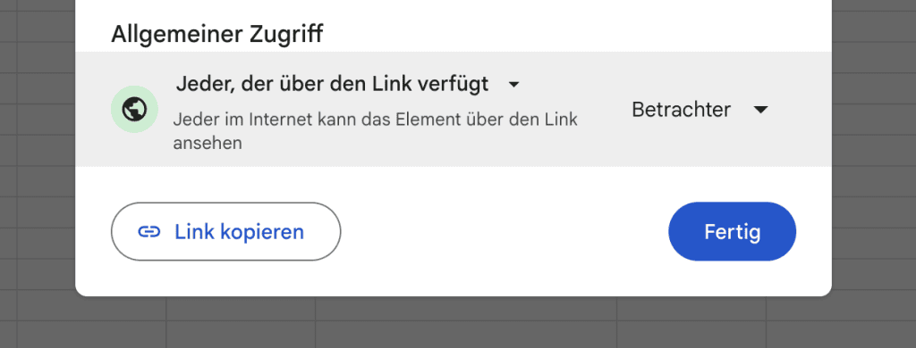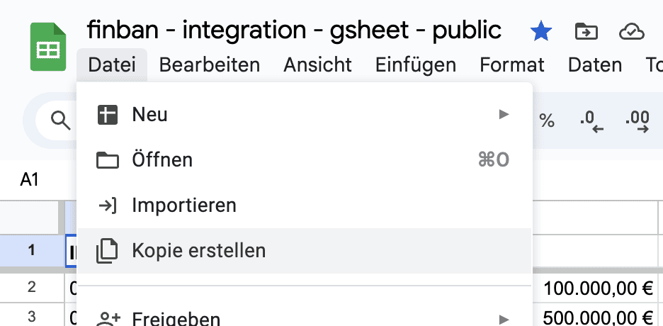 Nachdem Du das Sheet freigegeben hast, kannst du den Link kopieren. Diesen fügst du im finban Widget ein.