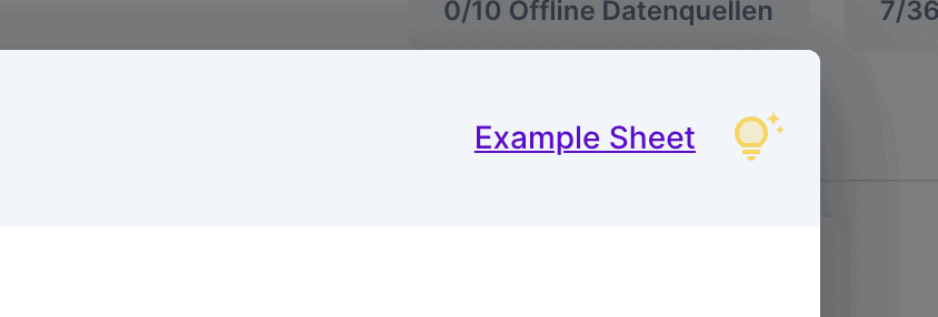 Im Google-Tabellenblatt-Widget findest du oben links einen Link zu einem Beispielblatt. Klicke auf den Link, um das Beispielblatt zu öffnen.