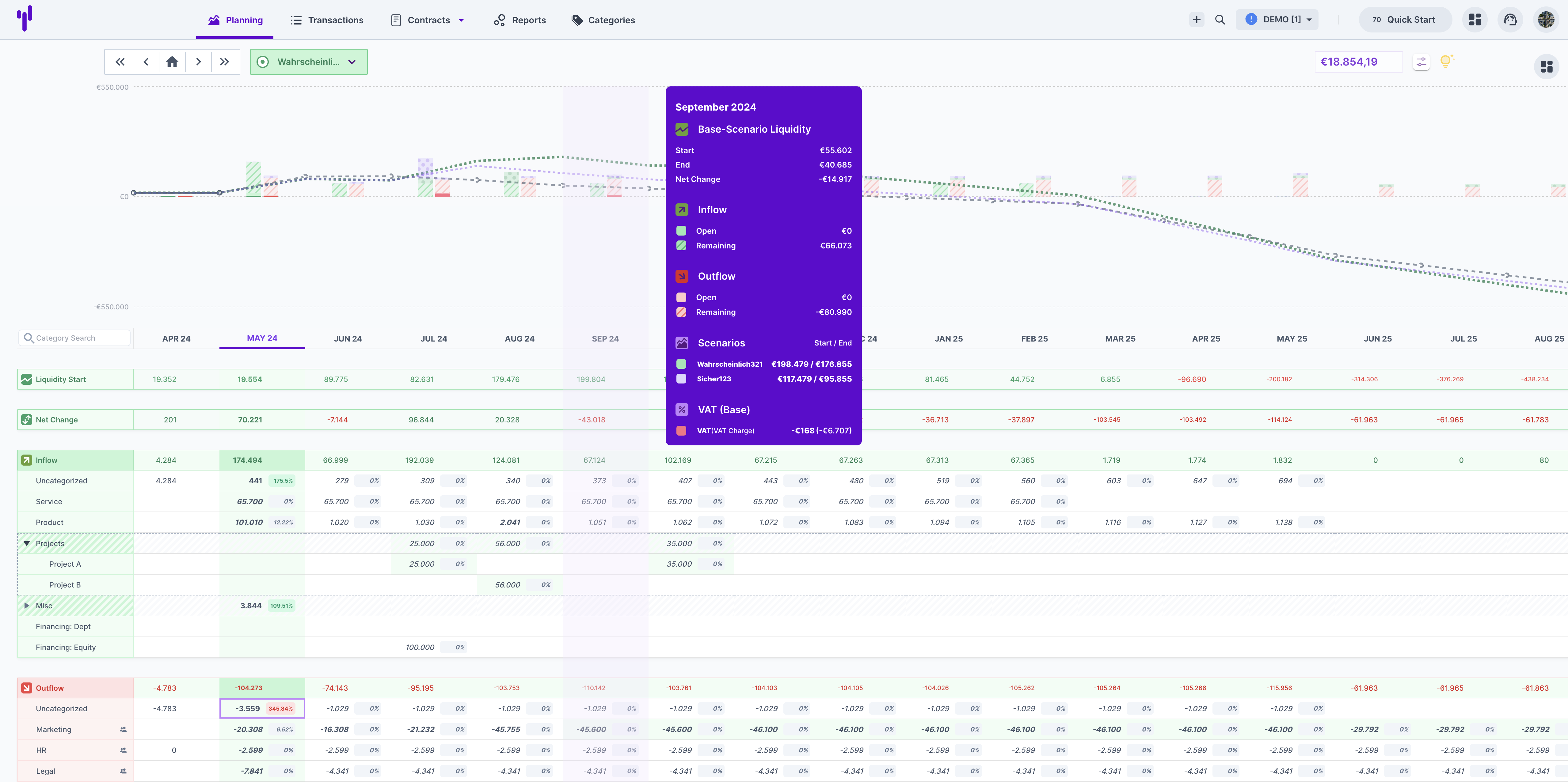 - Szenario-Analyse: Das Tool ermöglicht die Modellierung von Szenarien, um den zukünftigen Liquiditätsbedarf zu prognostizieren.